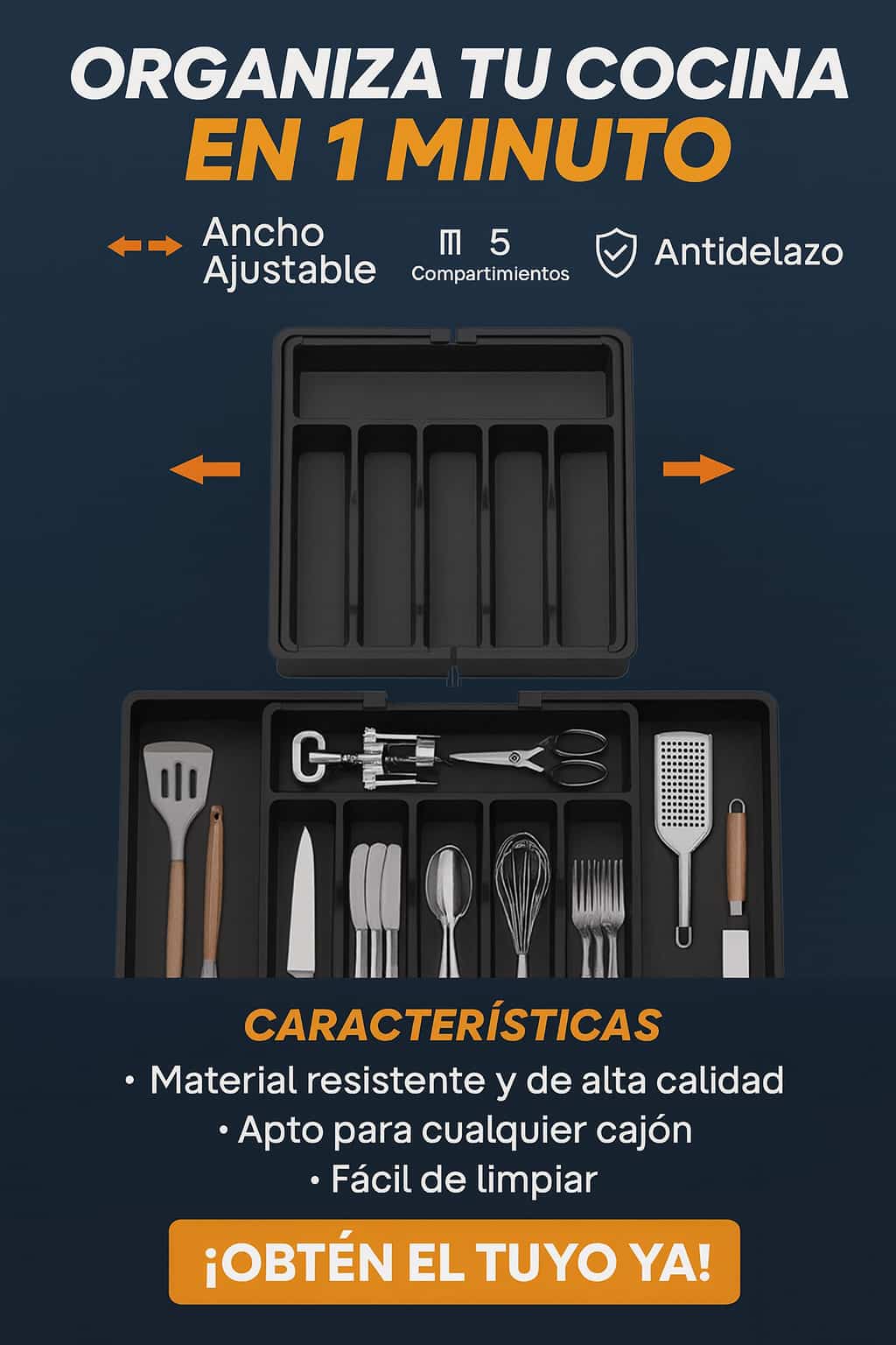 Organizá tus utensilios y accesorios con este práctico organizador de plástico, ideal para cualquier tipo de cajón.