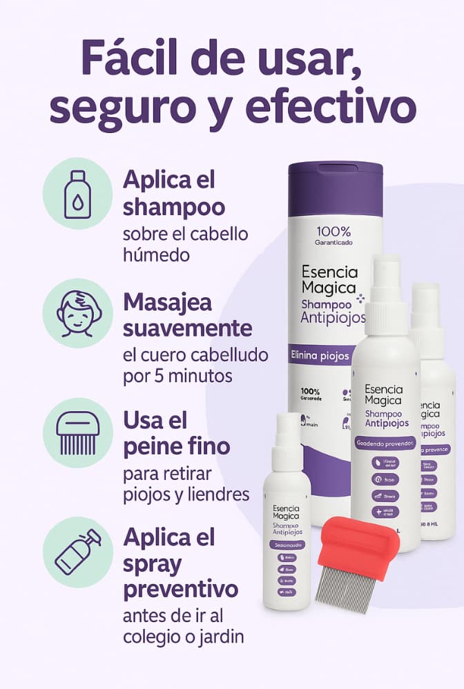Kit Antipiojos 1 Shampoo + 2 Repelentes Naturales + peine 🔥HOY 35% DESCUENTO 🔥